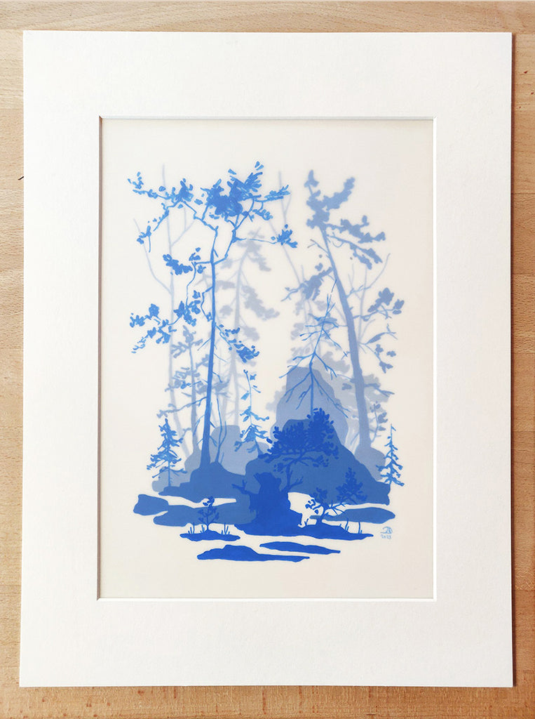 'Misty Forest' - Blå udgave vil kun blive lavet i et begrænset oplag på 15 stk, alle nummereret og signeret. Når disse er solgt, vil der ikke blive lavet flere med dette motiv, i denne specifikke farve. Dog vil andre farveudgaver af 'Misty Forest' løbende blive til og vil kunne findes i samlingen 'Misty Forest Oplag'.